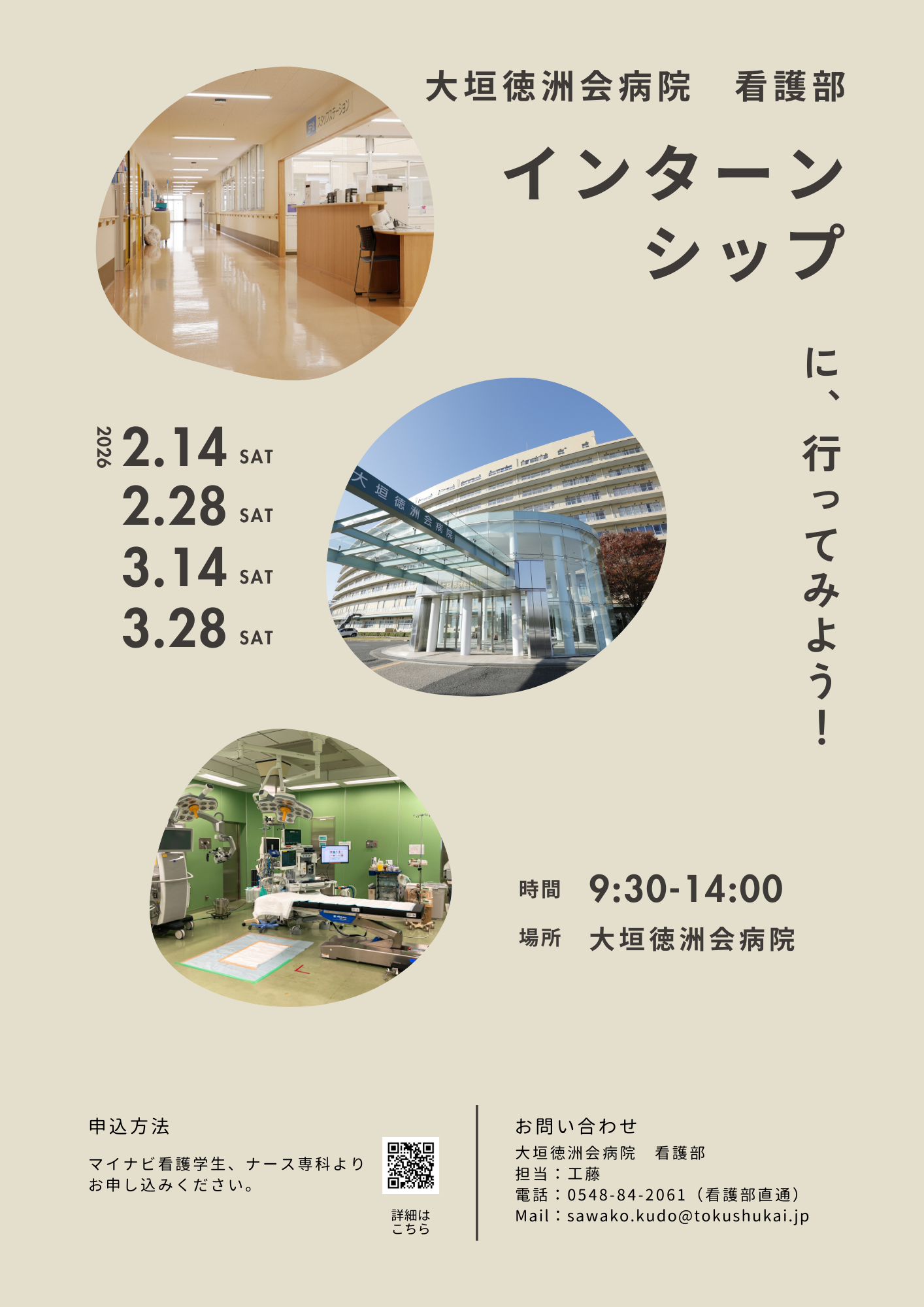 大垣徳洲会病院では、看護学生の皆さんに向けてインターンシップを毎月開催しています。