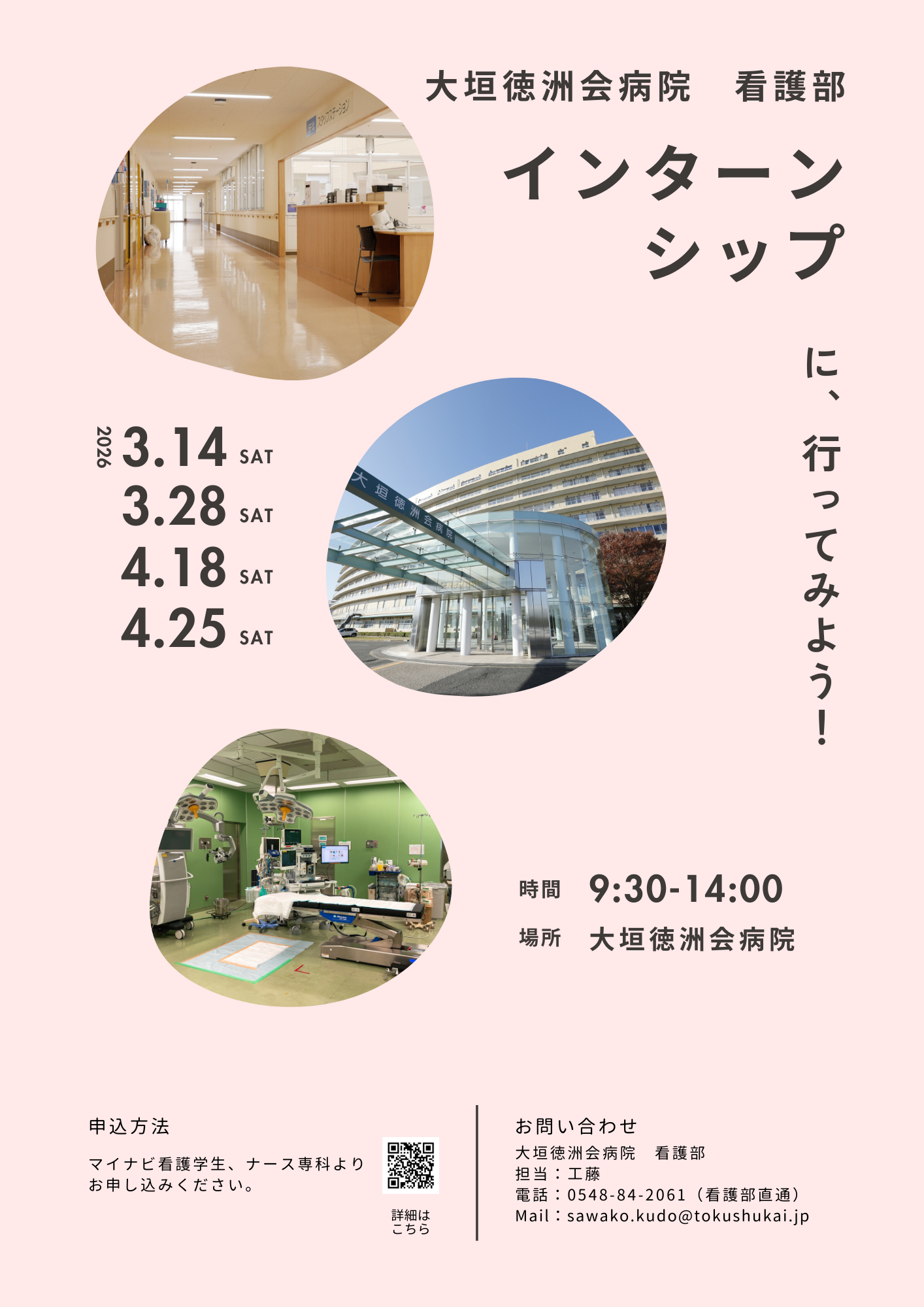 大垣徳洲会病院では、看護学生の皆さんに向けてインターンシップを毎月開催しています。